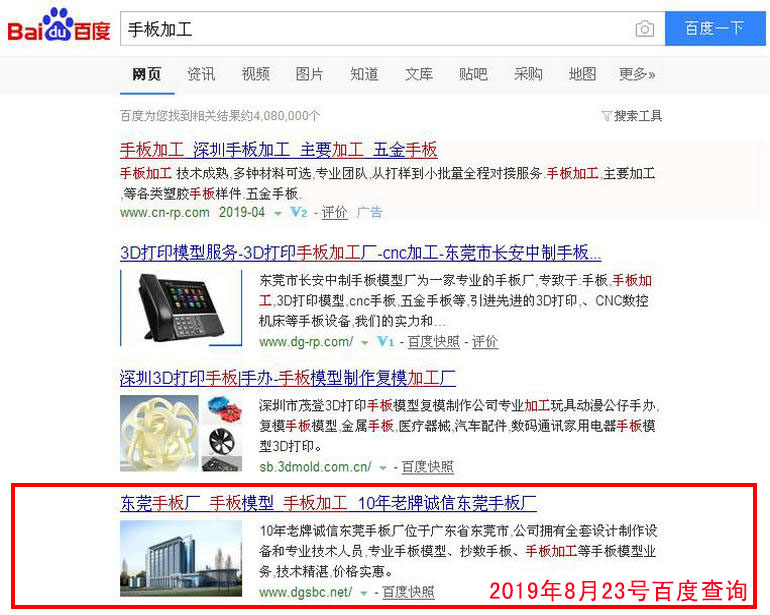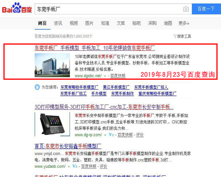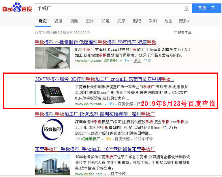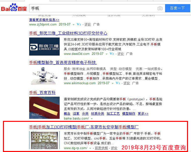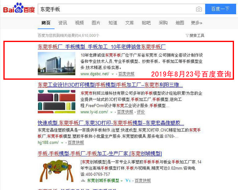 手板加工 : 2019-02-28上線 2019-03-05百度第20(原為第5頁 第7位) 2019-03-13百度第10名 2019-03-19百度第3名 2019-03-25百度第1名